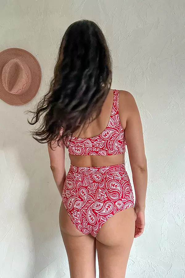 Nuestros más vendido juntos: el top Paz y el calzón Pipa. El top Paz tiene almohadillas removibles y un elástico en la base que ayuda a sostener y levantar el busto. El bottom Pipa tiene un drapeado y una malla que funcionan como control de abdomen.